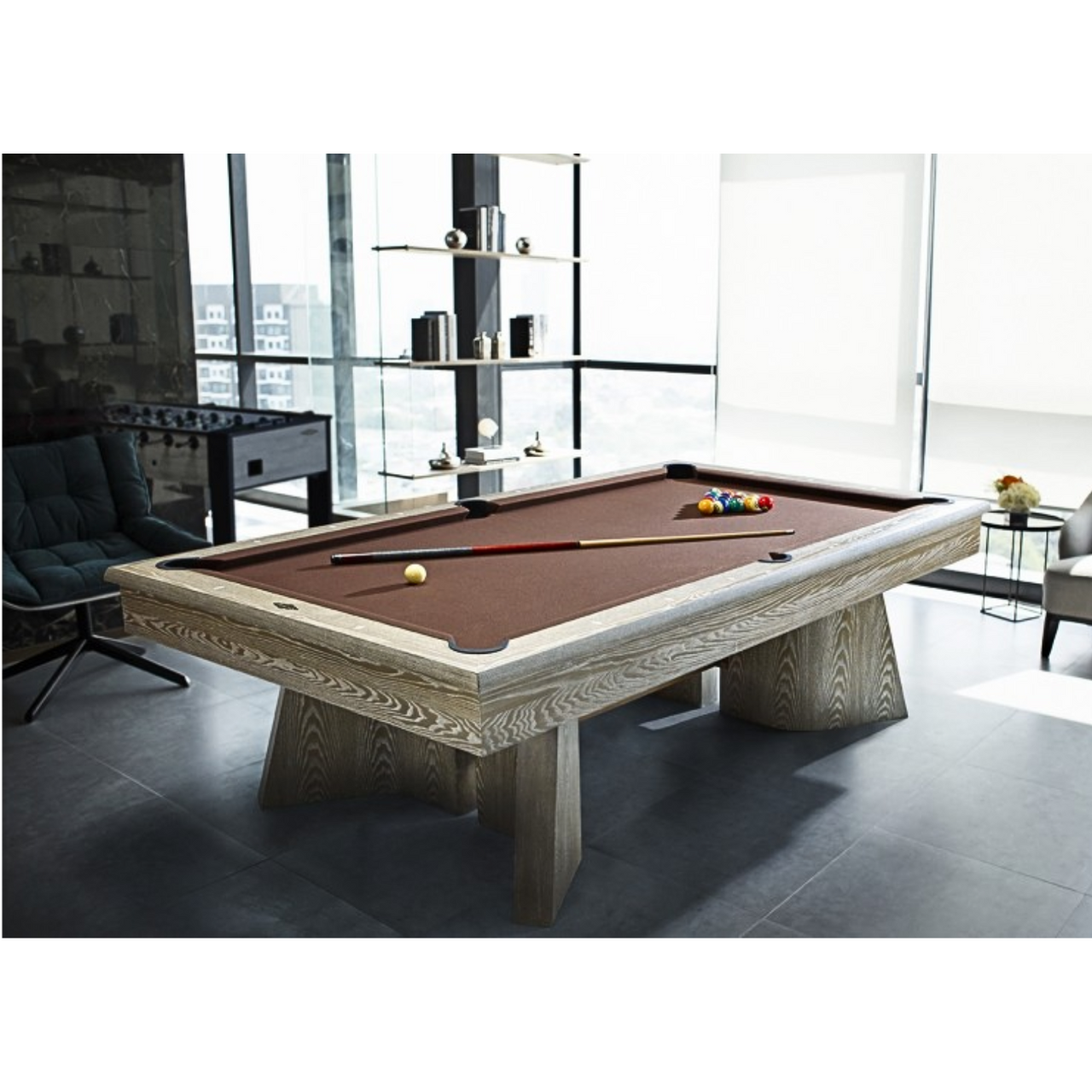 The Sagrada billiard table is a game room statement piece like no other. Its unique Sandwashed finish and mother-of-pearl sights make it both visually stunning and great for playability. Its broad table legs provide extra stability, and its Spanish name ‘Sagrada’, meaning ‘sacred’, exemplifies its distinguished craftsmanship.