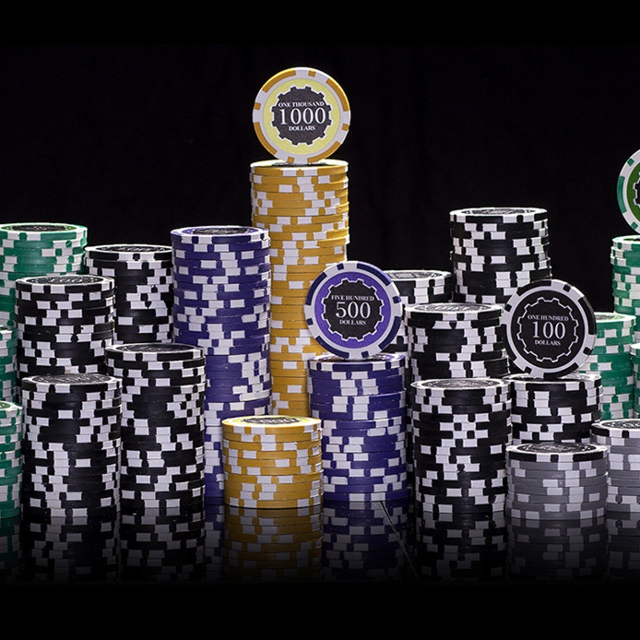 These 14 gram poker chips are great for any cash or tournament game. The denominations allow for a wide variety of limits. The white denominations on the textured black background make for easy to see betting. The textured inlay allows for easy stacking.