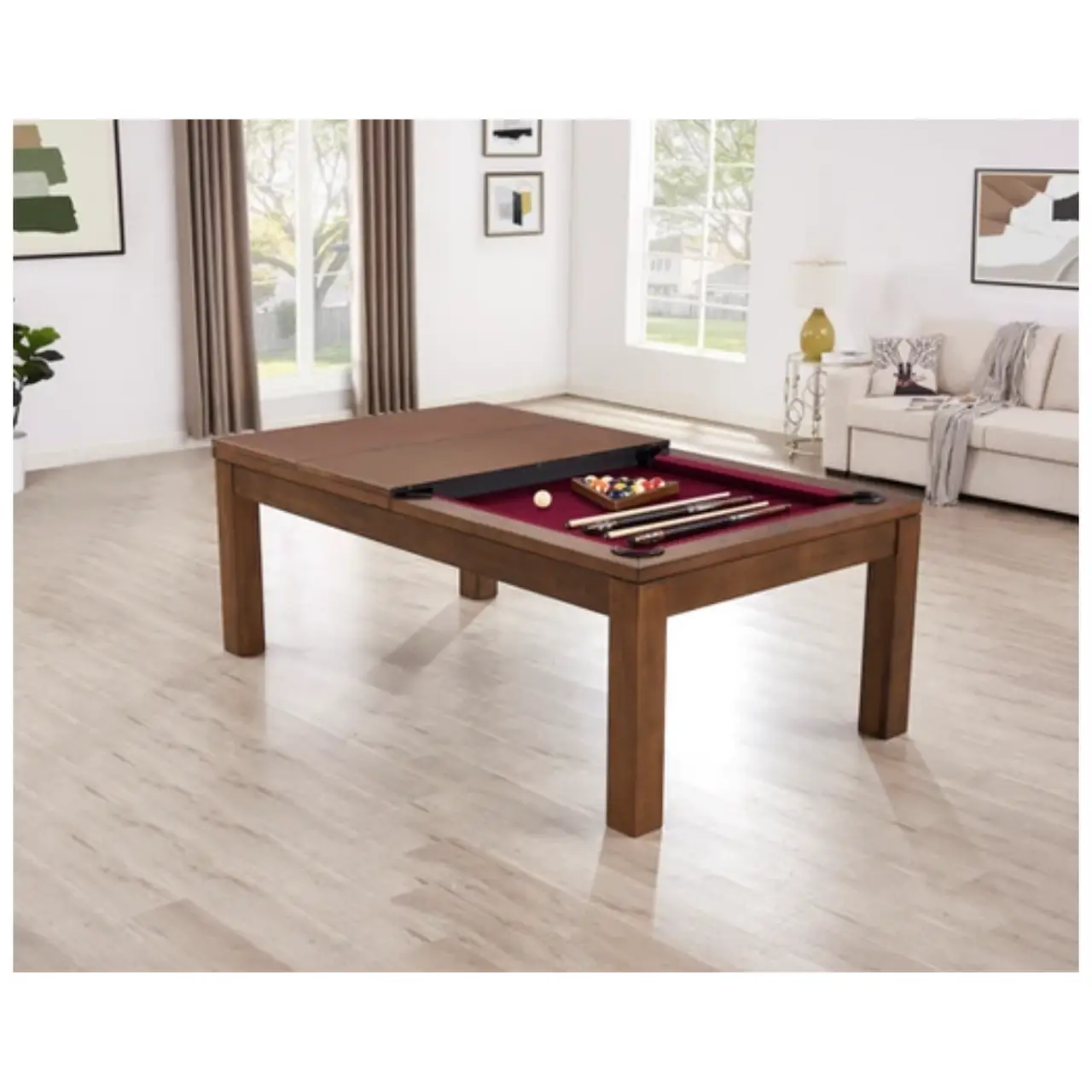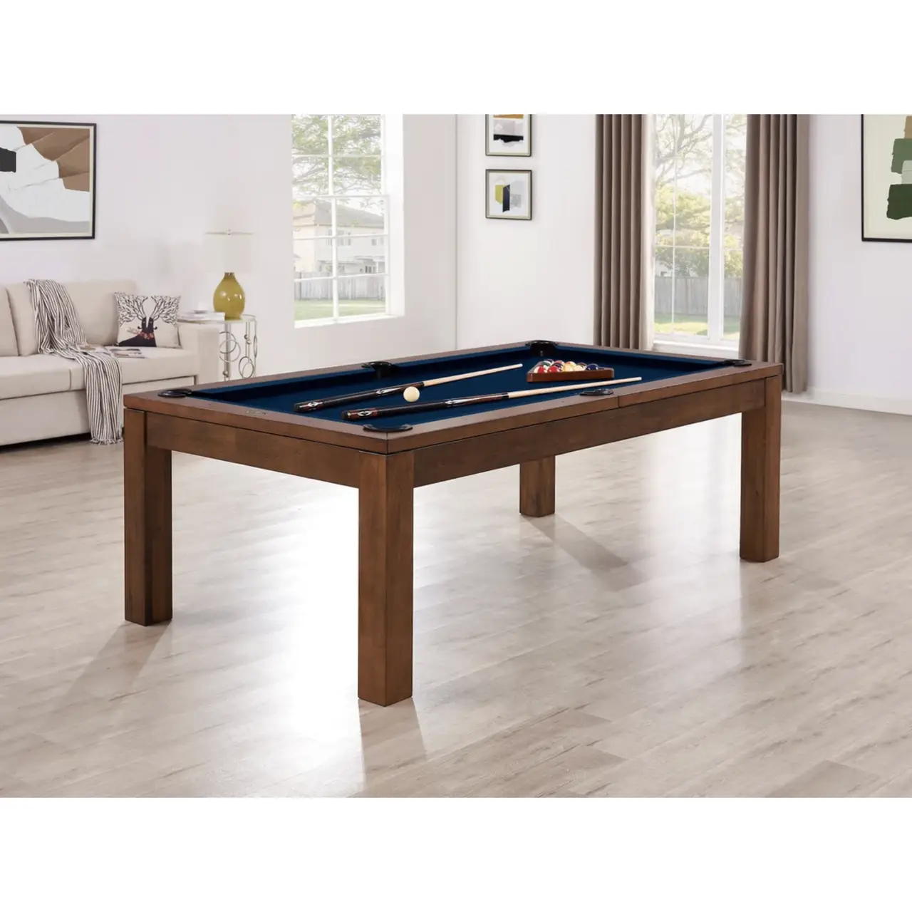 The Penelope II has the same sleek, clean frame of the first-generation table but with a thinner overall body. This table’s post legs, wood frame, and steel support beams provide maximum stability. It also has a slate-leveling system to ensure a consistent playfield. This table also comes with a dining top that can convert the table from a place to play to a place to dine. All Imperial pool tables are skillfully crafted and designed by billiard experts and enthusiasts.