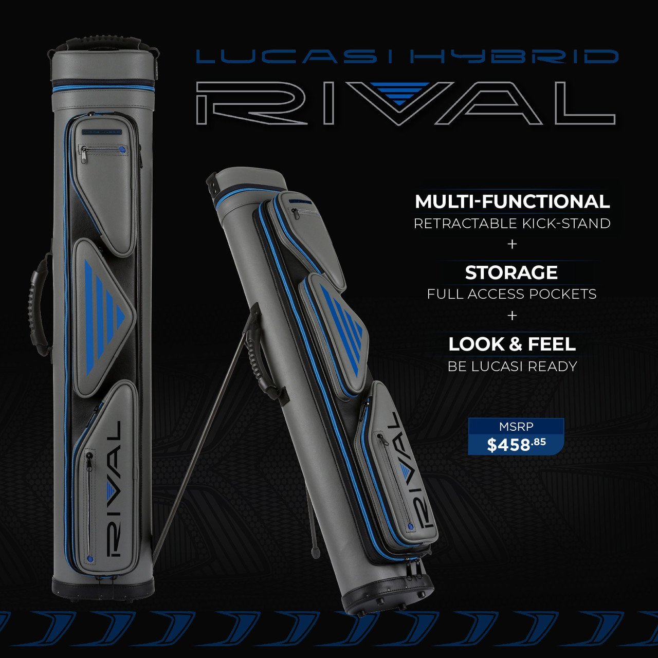 Lucasi Hybrid sport style silk sleeve case features a retractable kick stand. Includes multiple molded accessory pockets, adjustable backpack style shoulder straps, reinforced handle, air & jump cue butt sleeves, and a zipper pull snap with security lock. Keeping you tournament ready at all times.