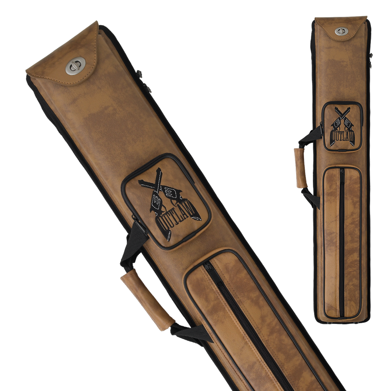 This Outlaw 3 butts and 5 shafts hard case is ready and waiting to carry your pool cues and miscellaneous items. With a longer jump pocket and a clasp style top flap, rest assured that your cues and items will be kept in good order. There is also a zipper for easy access on the back of the case. This case even features multiple styles!