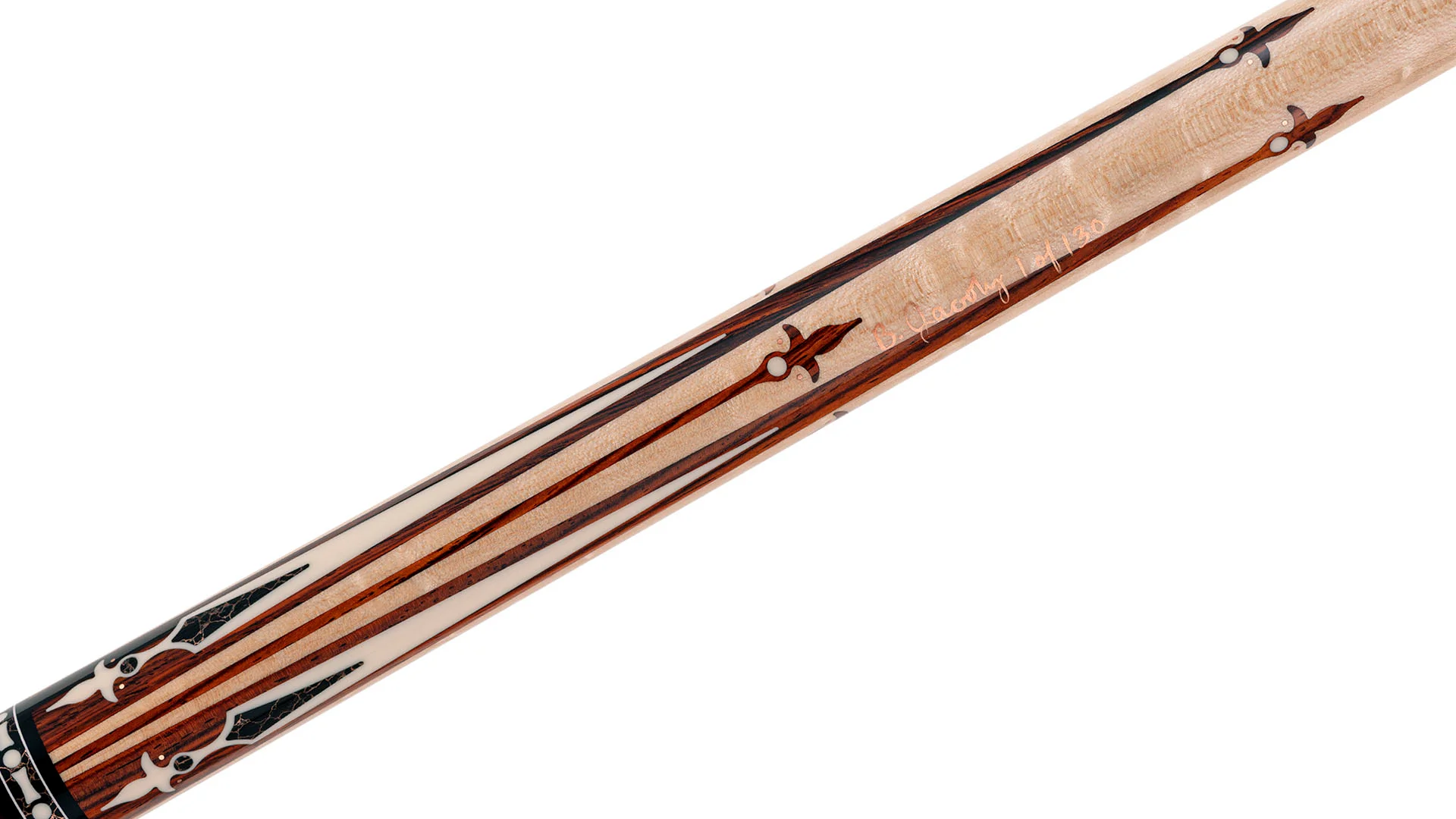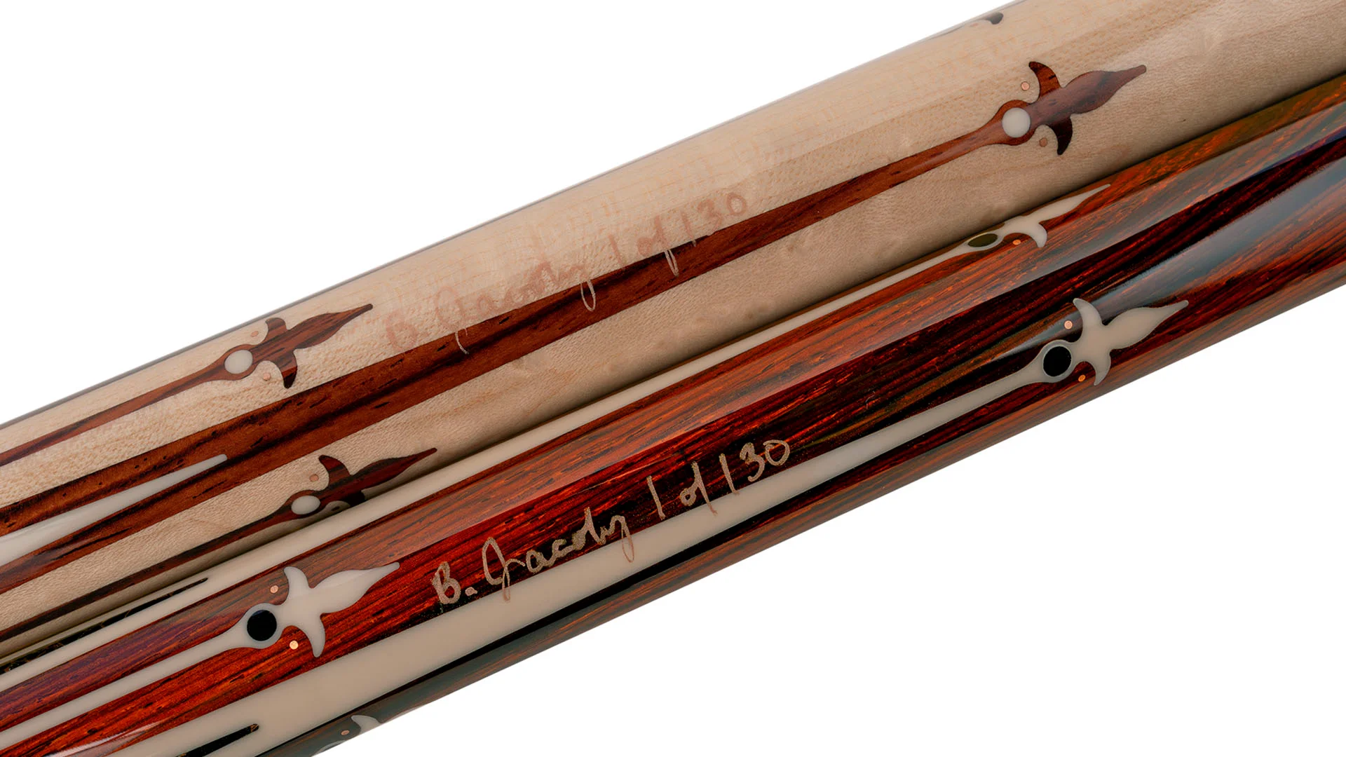 • Cocobolo spear tips inlaid with Micarta dots