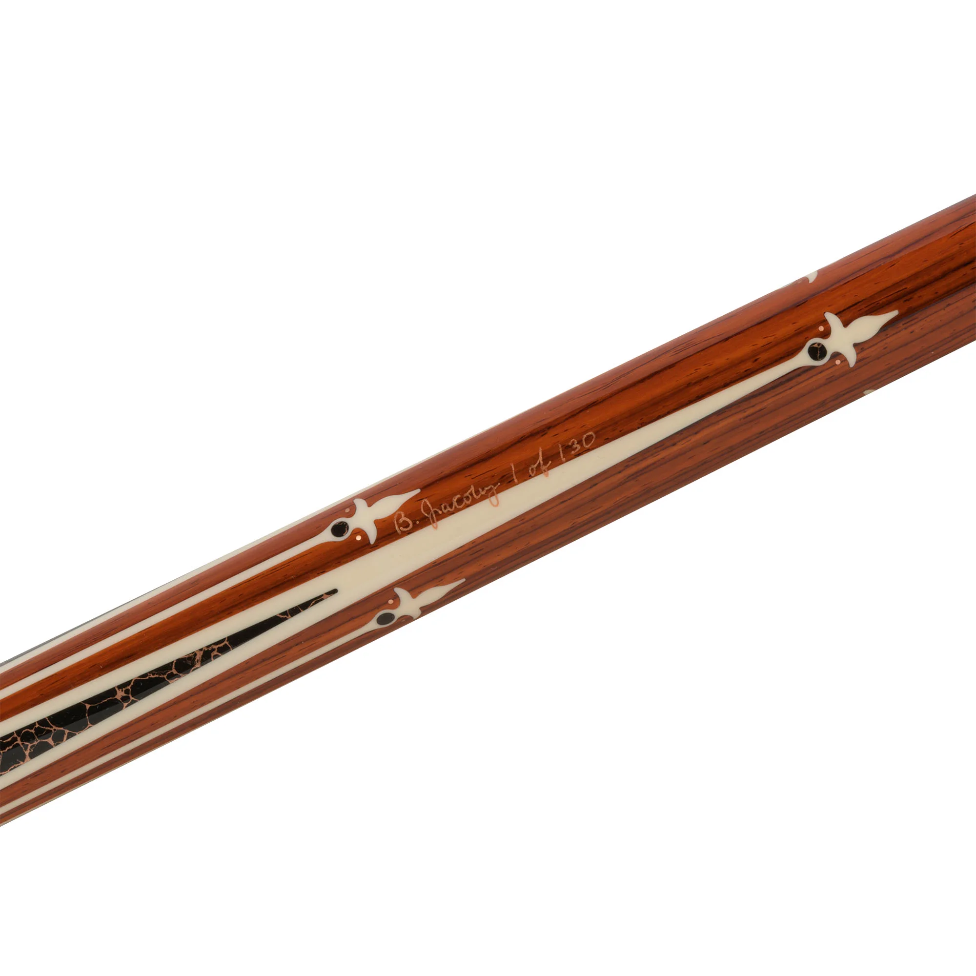 Behold the timeless and captivating boldness of the limited Nitara Panthera special edition cues. Designed in partnership with Jacoby, the Nitara Panthera cues feature Birdseye Maple wood with markings as unique as the predators that inspired them. These cues are accented with Cocobolo, Micarta, and black with gold webbing. Limited to only 130 of each model, individually signed and numbered, they are truly exceptional to behold