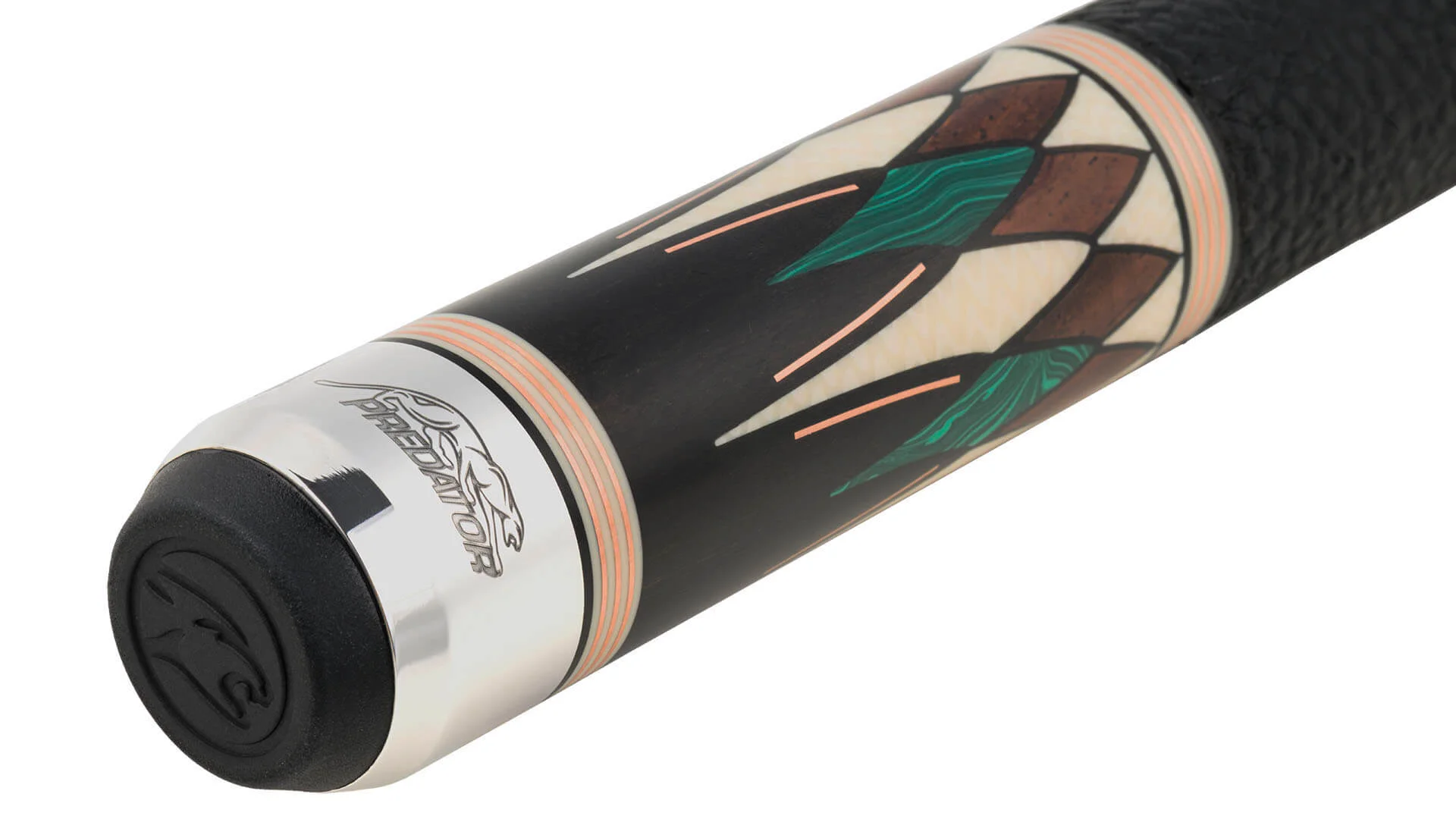 - Ebony butt sleeve with Green Malachite Predator cat, including inlayed Cocobolo, Ivorine, and Green Malachite points