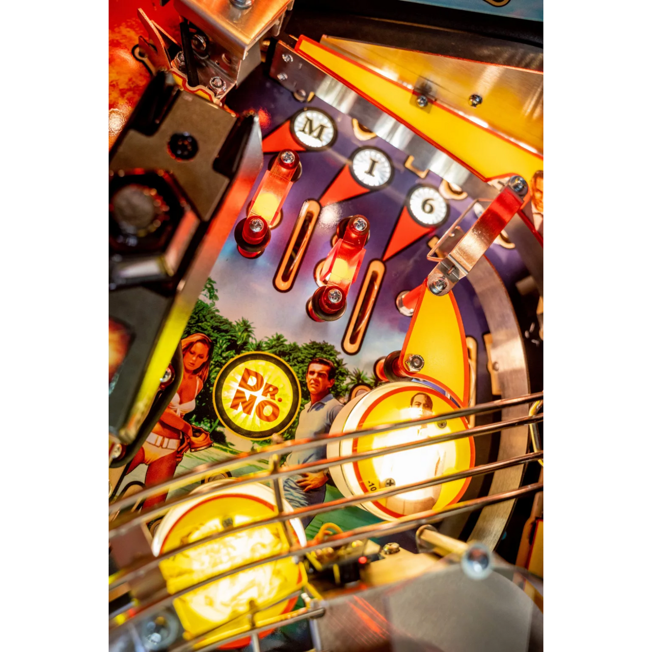 Stern’s James Bond 007 cornerstone pinball machine will highlight film footage and iconic music from the films that built the 007 legend: Dr. No, From Russia With Love (1963), Goldfinger (1964), Thunderball (1965), You Only Live Twice (1967), and Diamonds Are Forever (1971). Players are immersed into the world of espionage in this action-packed pinball experience, tackling assignments, teaming up with key allies, and stopping SPECTRE’s villainous schemes.