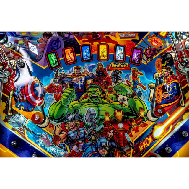For over 50 years the Avengers have delighted fans through comic books, television series and movies.  In this pinball adventure, players will transform into their favorite Super Heroes as they battle Thanos and his minions across the cosmos.  On his unrelenting quest for intergalactic omnipotent power, it’s a race to hunt down and recover the six Infinity Gems before Thanos gets his hands on them.  It’s up to the player to stop Thanos and the Black Order from succeeding in this action-packed pinball experience.