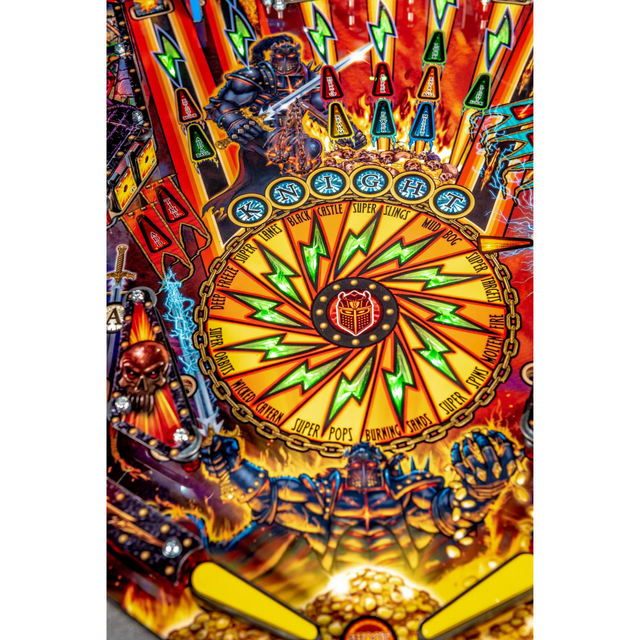 The Premium model includes the distinct “Magna-Save”, a player-controlled magnet used to prevent a ball from draining, and timed resetting drop targets. In addition, Black Knight: Sword of Rage features a legacy sound package composed and performed by Scott Ian of Anthrax with Brendon Small, adrenalizing the audio experience for players on their journey, and custom speech by Ed Robertson of Barenaked Ladies.