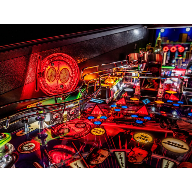 To raise the stakes, John Wick pinball introduces Stern’s all-new dynamic AI combat system, an innovation that brings the frenetic combat of the legendary films to the game. The Stern team has created a primitive video game AI system to control the enemy lights on the playfield, setting the John Wick pinball games apart from prior pinball machines, where all lights were controlled by player actions, timers, and random number generations. In this new AI combat system, enemy icons are responsive to player behavior and will illuminate dynamically around the playfield to challenge the player. The enemies move tactically with this dynamic software to counter player objectives, creating a unique challenge in each game session. The system also features a new action video player that dynamically reflects player action – as you defeat three enemies, you’ll see video clips of John Wick doing the same in the films!