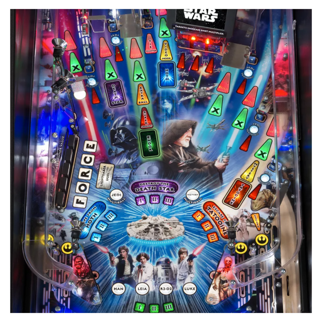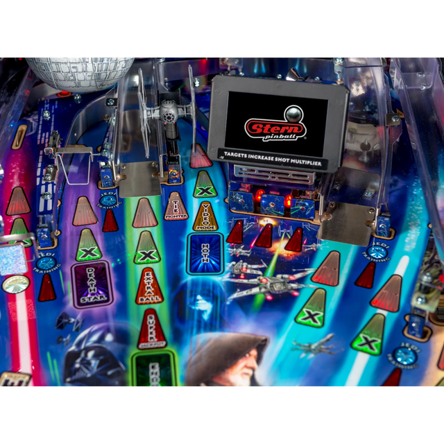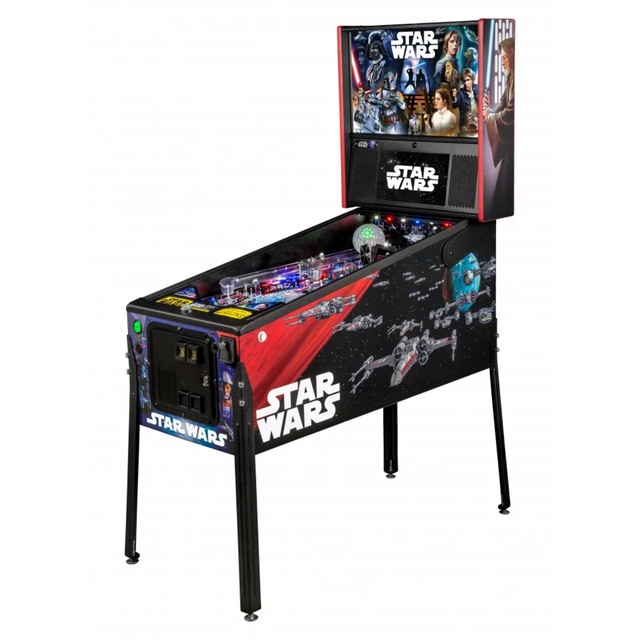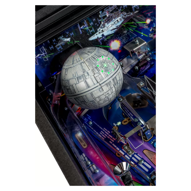 Star Wars pinball machines will be available in Pro and Premium models. The game will immerse players in the dynamic and challenging Star Wars pinball environment as they battle to restore justice to the Galaxy. Stern’s Star Wars Pro machines are packed with features that provide an irresistible game experience. The game includes select speech and footage from the original Star Wars trilogy; color-changing LED-lighted inserts; and a sculpted TIE Fighter.