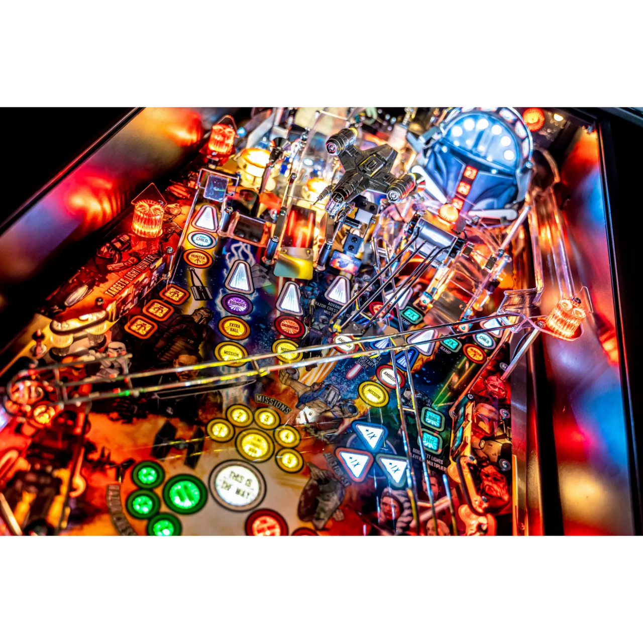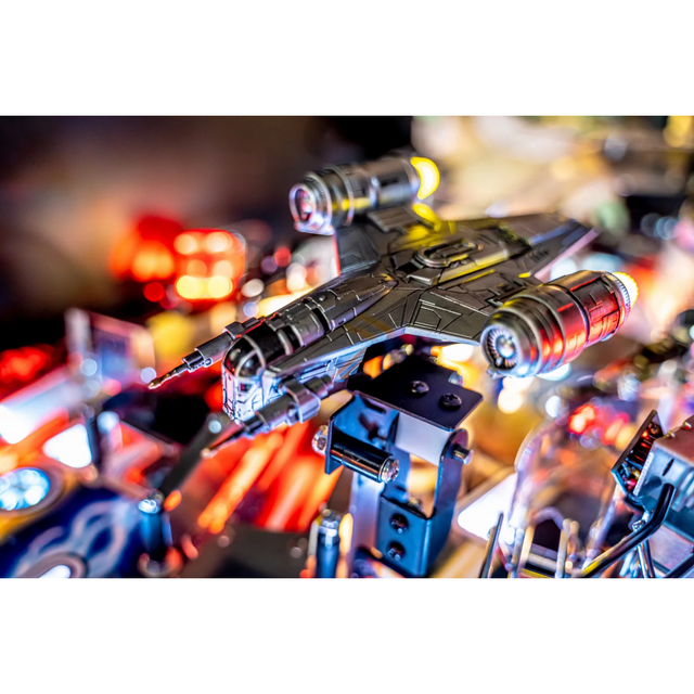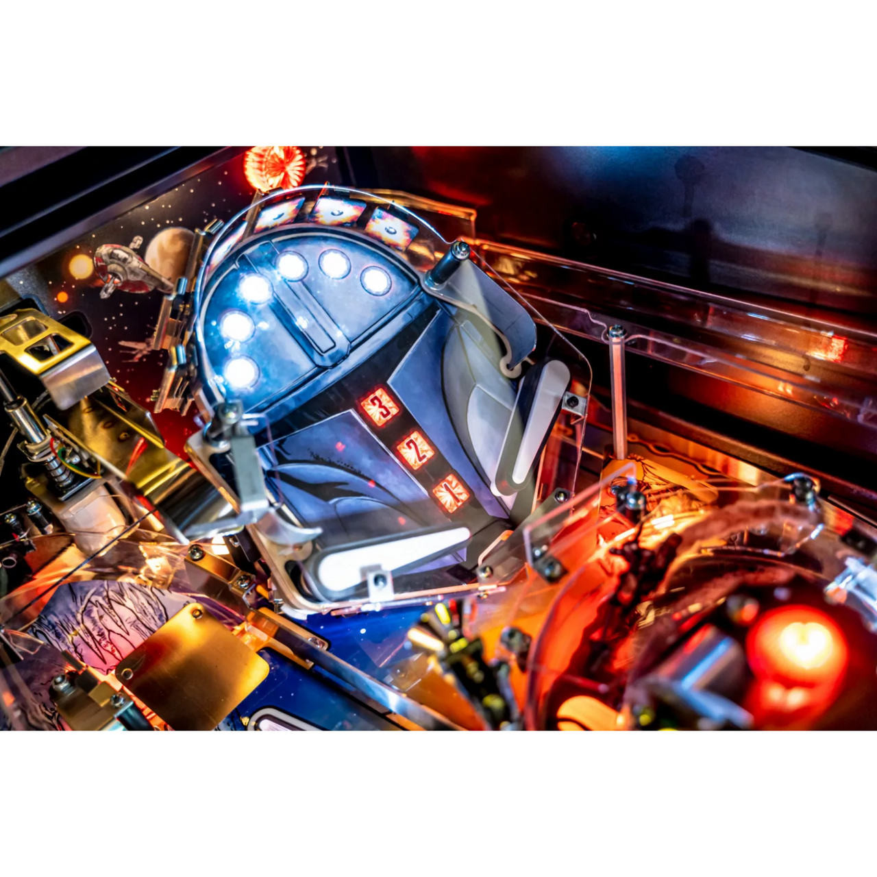 Players can navigate their way to multiball mayhem by hitting a unique hanging uplift target attached to a custom molded Razor Crest ship. Success in hitting the target qualifies a center ramp shot on the Pro, Premium, and Limited Edition models.